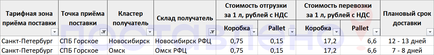 🔔 В целом логика простая — чем дальше расстояние между тарифной зоной отгрузки и кластером доставки, тем дороже стоимость перевозки каждого литра и дольше срок выполнения. Однако по некоторым направлениям тарифы Озон могут приятно удивить, потому что могут оказаться заметно дешевле, чем услуги транспортных компаний (ТК).