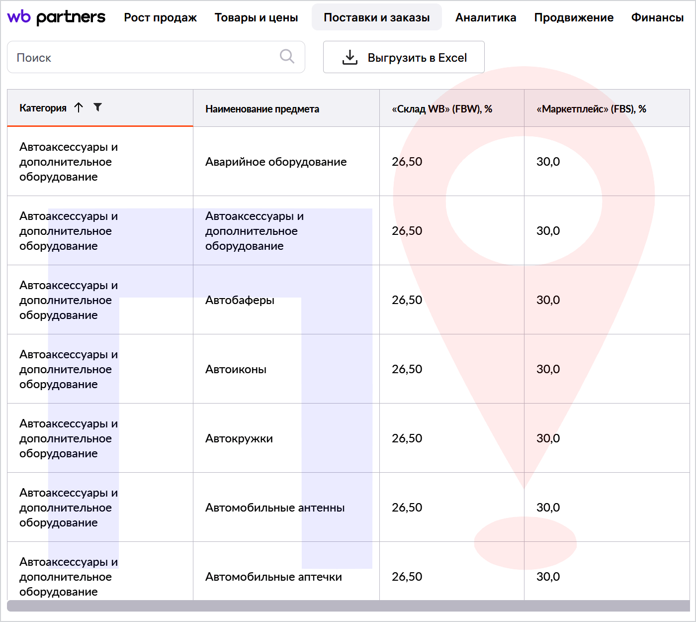 - Базовые тарифы для каждой категории товаров можно посмотреть в этой таблице.